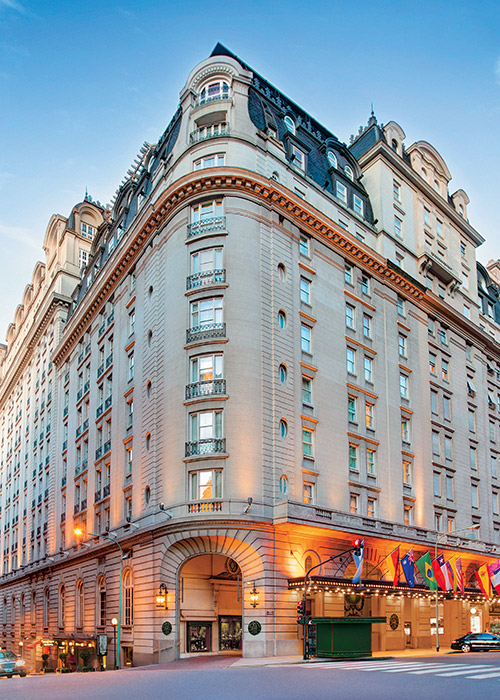 El Alvear Palace Hotel, en el elegante barrio de La Recoleta, cuenta con áreas públicas de inspiración francesa y suites decoradas en estilo Imperio y Luis XV. Los pisos superiores, reinaugurados en 2016, ofrecen espaciosas suites de diseño contemporáneo.